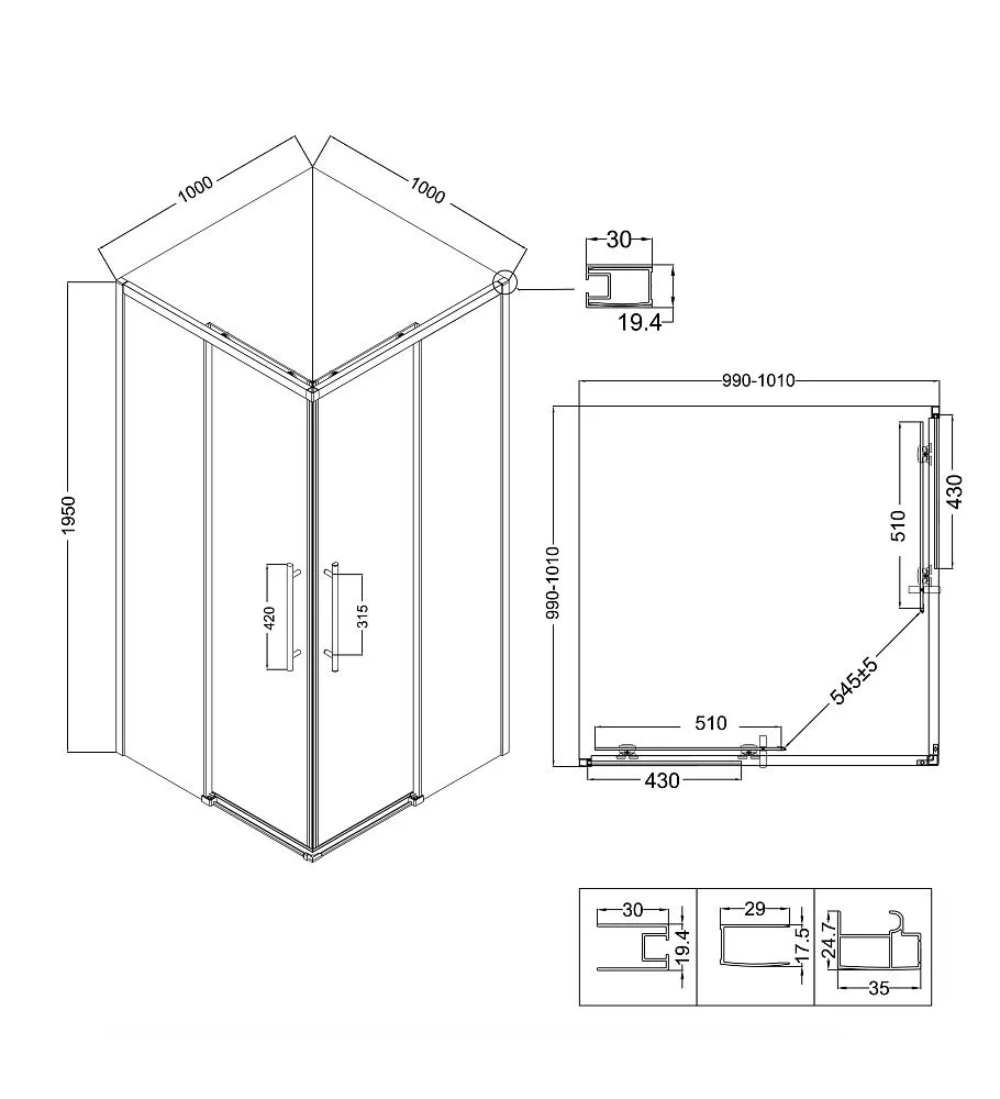 Наименование: Душевое ограждение Niagara Nova NG-6830-34BLACK (100*100*195) квадрат, двери раздвижные;