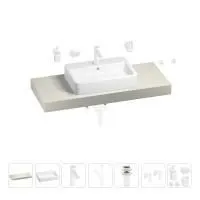 1 x cтолешница для раковины, арт. 162003000 (размер 120*50 см, цвет структурный белый); 1 х керамическая раковина, арт. 150801000 (размер 60*40 см, цвет глянцевый белый); 1 x декоративная заглушка на отверстие перелива раковины (цвет хром); 1 х смеситель для раковины, арт. 182305000 (цвет матовый белый); 2 х гибкая подводка для подключения смесителя, 45 см; 1 x сифон для раковины, арт. 182123000 (цвет матовый белый); 1 x донный клапан для раковины, арт. 182133000 (цвет матовый белый); 2 x угловой вентиль, арт. 182150000 (цвет матовый белый); 1 x дозатор для жидкого мыла с держателем, арт. 182515000 (стекло матовое, держатель матовый белый); 1 x мыльница с держателем, арт. 182505000 (стекло матовое, держатель матовый белый); 1 x стакан для зубных щеток с держателем, арт. 182510000 (стекло матовое, держатель матовый белый); 2 x крючок для полотенца/халата, арт. 182520000 (цвет матовый белый); 6 x комплект креплений для монтажа; 9 x инструкция по монтажу и эксплуатации; 9 x гарантийный талон. |