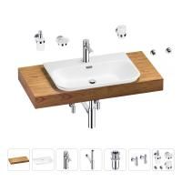 1 x cтолешница для раковины, арт. 162010000 (размер 100*50 см, цвет светлый дуб Оксфорд); 1 х керамическая раковина, арт. 151401000 (размер 65*45 см, цвет глянцевый белый); 1 x декоративная заглушка на отверстие перелива раковины (цвет хром); 1 х смеситель для раковины, арт. 182401000 (цвет хром); 2 х гибкая подводка для подключения смесителя, 45 см; 1 x сифон для раковины, арт. 182119000 (цвет хром); 1 x донный клапан для раковины, арт. 182129000 (цвет хром); 2 x угловой вентиль, арт. 182146000 (цвет хром); 1 x дозатор для жидкого мыла с держателем, арт. 182511000 (стекло матовое, держатель хром); 1 x мыльница с держателем, арт. 182501000 (стекло матовое, держатель хром); 1 x стакан для зубных щеток с держателем, арт. 182506000 (стекло матовое, держатель хром); 2 x крючок для полотенца/халата, арт. 182516000 (цвет хром); 6 x комплект креплений для монтажа; 9 x инструкция по монтажу и эксплуатации; 9 x гарантийный талон. |