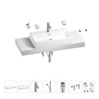 1 x cтолешница для раковины, арт. 162019000 (размер 120*50 см, цвет матовый белый); 1 х керамическая раковина, арт. 150903000 (размер 70*41 см, цвет глянцевый белый); 1 x декоративная заглушка на отверстие перелива раковины (цвет хром); 1 х смеситель для раковины, арт. 182301000 (цвет хром); 2 х гибкая подводка для подключения смесителя, 45 см; 1 x сифон для раковины, арт. 182119000 (цвет хром); 1 x донный клапан для раковины, арт. 182129000 (цвет хром); 2 x угловой вентиль, арт. 182146000 (цвет хром); 1 x дозатор для жидкого мыла с держателем, арт. 182511000 (стекло матовое, держатель хром); 1 x мыльница с держателем, арт. 182501000 (стекло матовое, держатель хром); 1 x стакан для зубных щеток с держателем, арт. 182506000 (стекло матовое, держатель хром); 2 x крючок для полотенца/халата, арт. 182516000 (цвет хром); 7 x комплект креплений для монтажа; 9 x инструкция по монтажу и эксплуатации; 9 x гарантийный талон. |