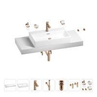 1 x cтолешница для раковины, арт. 162019000 (размер 120*50 см, цвет матовый белый); 1 х керамическая раковина, арт. 150903000 (размер 70*41 см, цвет глянцевый белый); 1 x декоративная заглушка на отверстие перелива раковины (цвет хром); 1 х смеситель для раковины, арт. 182304000 (цвет розовое золото); 2 х гибкая подводка для подключения смесителя, 45 см; 1 x сифон для раковины, арт. 182122000 (цвет розовое золото); 1 x донный клапан для раковины, арт. 182132000 (цвет розовое золото); 2 x угловой вентиль, арт. 182149000 (цвет розовое золото); 1 x дозатор для жидкого мыла с держателем, арт. 182514000 (стекло матовое, держатель розовое золото); 1 x мыльница с держателем, арт. 182504000 (стекло матовое, держатель розовое золото); 1 x стакан для зубных щеток с держателем, арт. 182509000 (стекло матовое, держатель розовое золото); 2 x крючок для полотенца/халата, арт. 182519000 (цвет розовое золото); 7 x комплект креплений для монтажа; 9 x инструкция по монтажу и эксплуатации; 9 x гарантийный талон. |