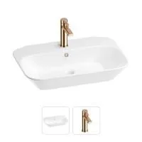 1 х керамическая раковина, арт. 151301000 (размер 65*45 см, цвет глянцевый белый); 1 x декоративная заглушка на отверстие перелива раковины (цвет хром); 1 х смеситель для раковины, арт. 182404000 (цвет розовое золото); 2 х гибкая подводка для подключения смесителя, 45 см; 2 x инструкция по монтажу и эксплуатации; 2 x гарантийный талон. |