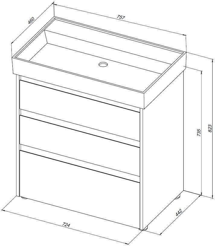 Тумба под раковину Aquanet Nova Lite 75 дуб рустикальный (3 ящика)