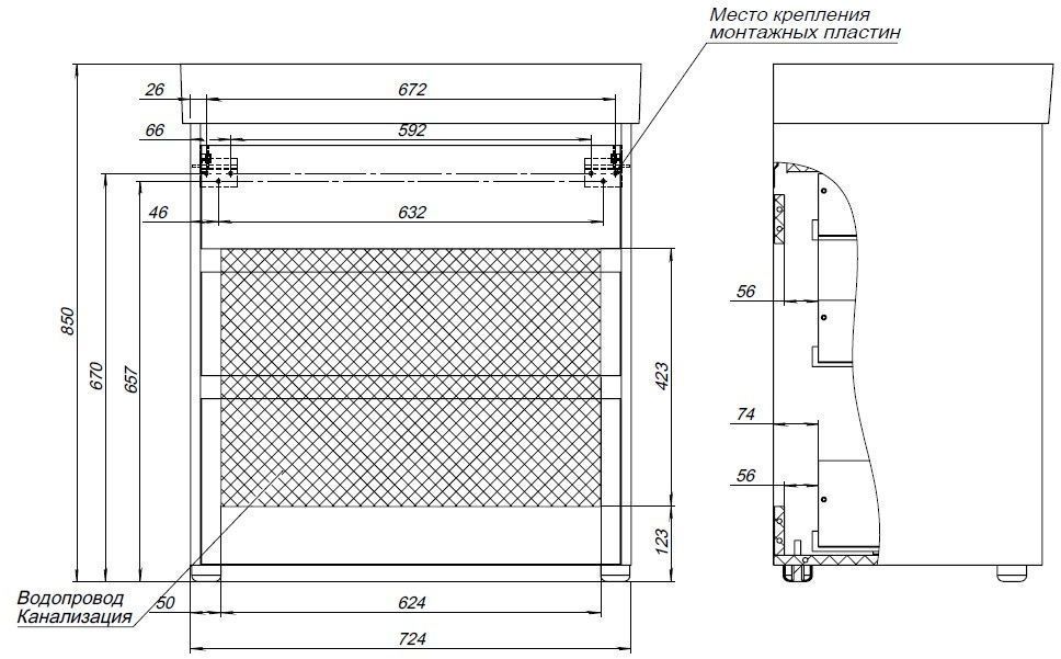 - Тип устанавливаемой раковины: Полувстраиваемая