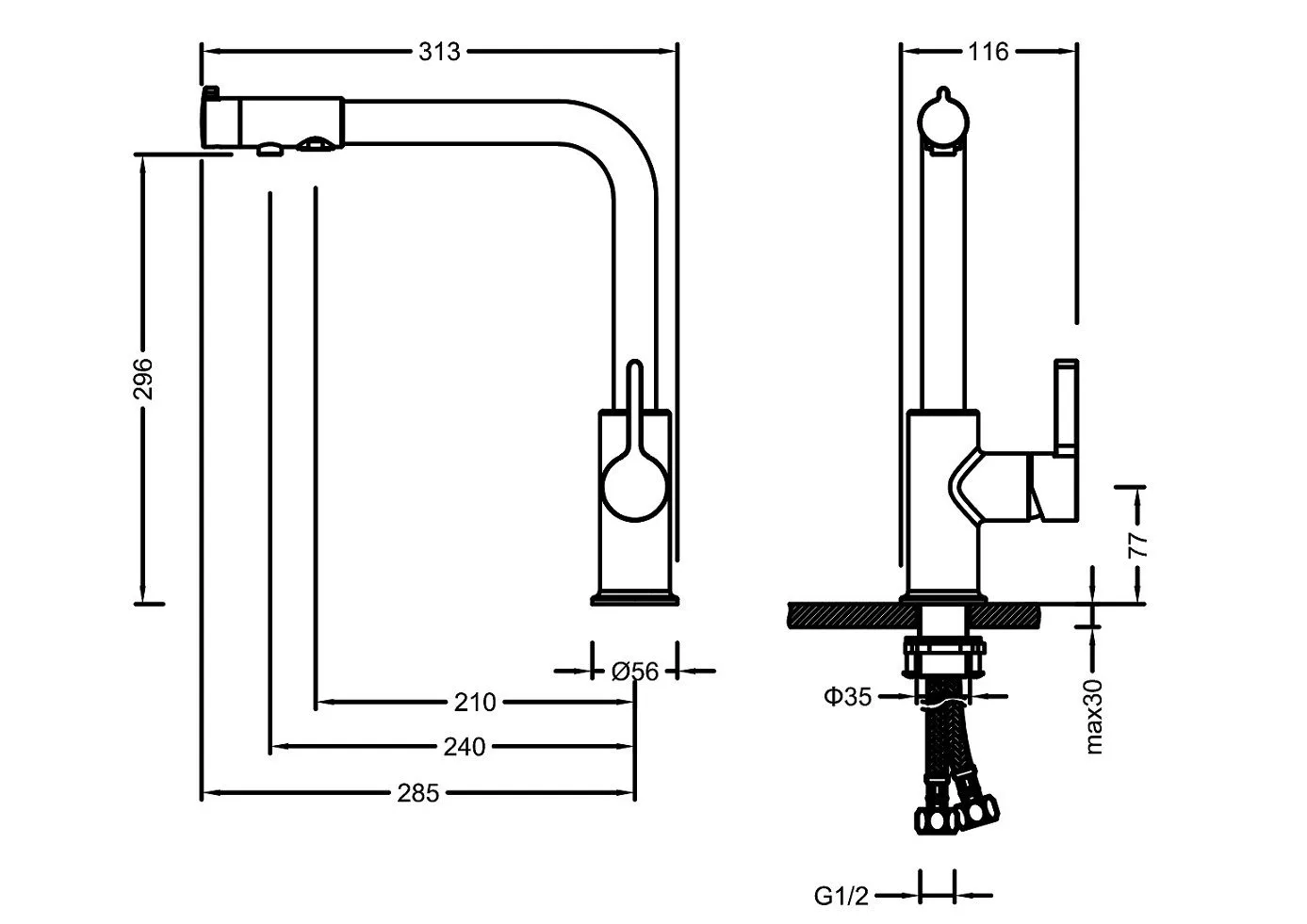 Совмещенный излив для питьевой воды, Поворотный |