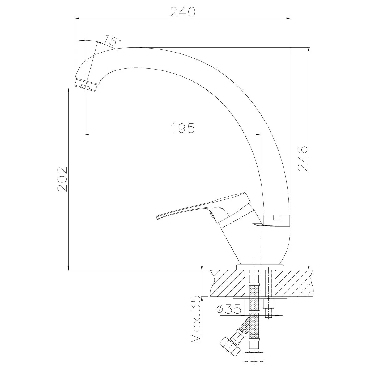 Пластиковый аэратор с функцией легкой очистки; Керамический картридж 35 мм; Гибкая подводка 35 см – 2 шт.; Присоединительная группа для горизонтального крепления; Металлическая рукоятка |