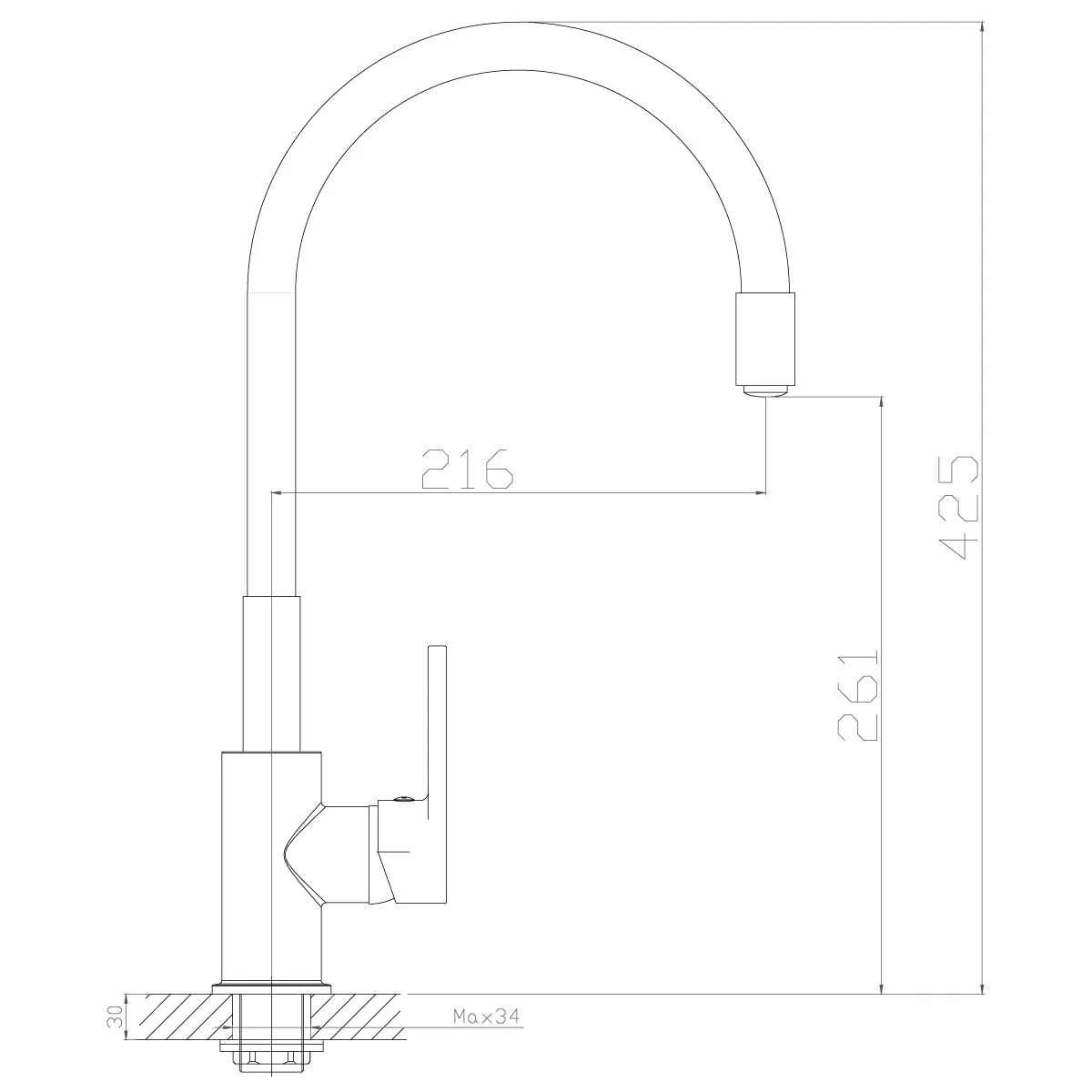 Высота излива, мм