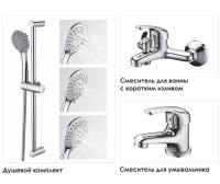 Входит в комплект: Стойка для душа, Ø 19мм; Лейка 3-функциональная с системой защиты от известковых отложений; Шланг металлический 1500 мм, подключение к лейке; Смеситель для ванны с коротким изливом; Смеситель для умывальника; Душевой комплект; Гибкая подводка G1/2, 370 мм, Sedal (Испания); Регулируемый держатель лейки; Набор для монтажа.