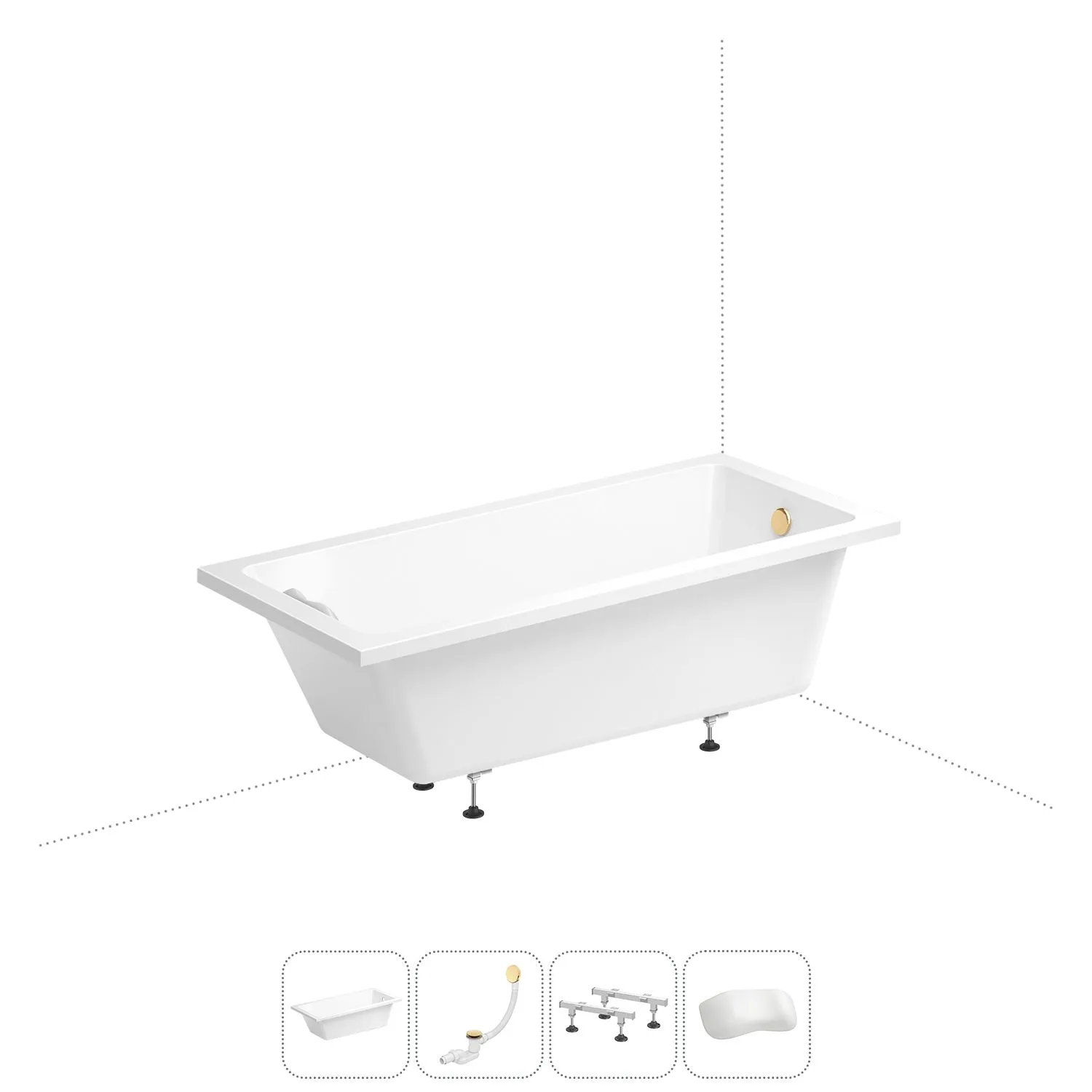 Нестираемая глянцевая поверхность ванны отличается износостойкостью и антимикробными свойствами, не требуя щепетильного ухода и химических средств, не подвержена воздействию УФ-лучей и пожелтению. Функциональные водосливные элементы, представленные в цвете хром, золото, глянцевый белый и матовый черный, идеально дополнят композицию и повысят комфорт эксплуатации.